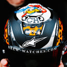 Secure your own limited edition replica of Corey Alexander’s 2025 Alpinestars R10 Helmet, crafted by renowned motorsports designer Aldo Drudi of Drudi Performance and meticulously hand-painted in Italy by Aeroworks Design. The helmet features the carbon fiber shell through Corey's cheetah print pattern and chrome ARCH motorcycle buddha on each side with additional chrome accents